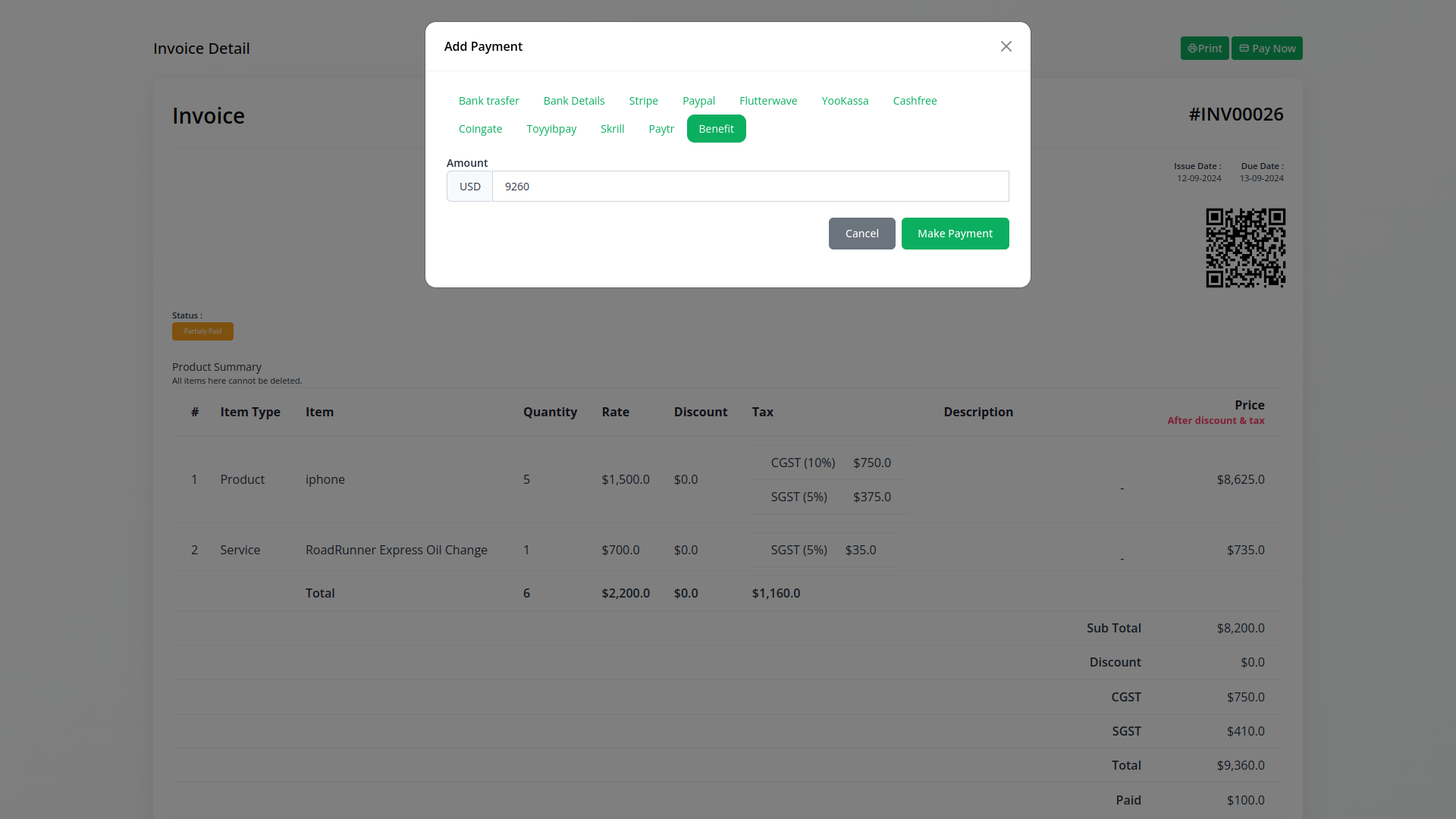 Benefit PG supports full, partial and multiple partial refunds. Note that you need to request partial refund enablement from Benefit when you sign up with them.