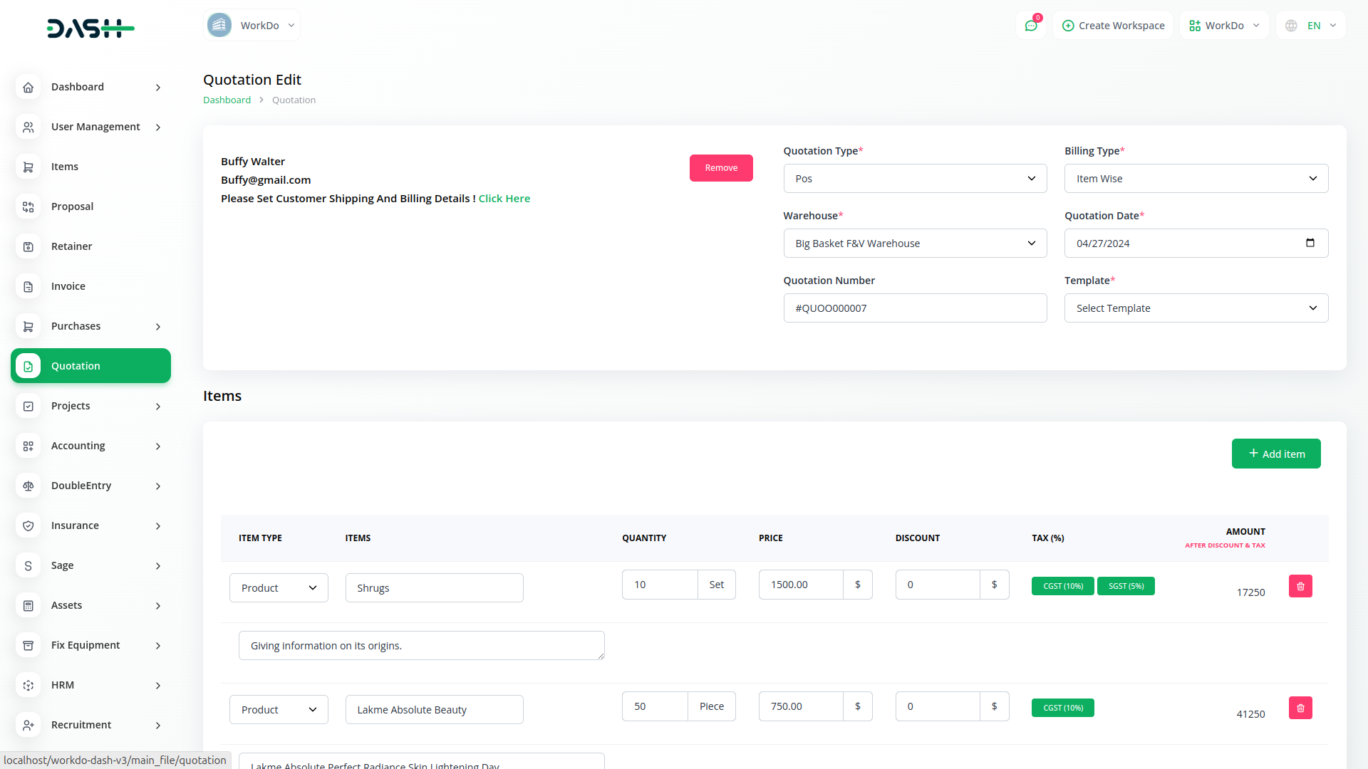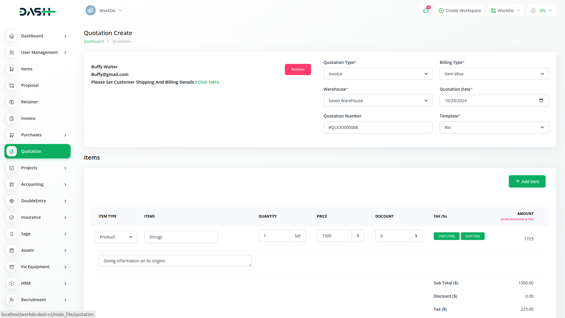 Quotation management is critical to any business, influencing customer perception, revenue generation, and overall efficiency. With Dash SaaS, you can revolutionize your quotation process, simplifying the creation, tracking, and conversion of quotes into invoices. Our comprehensive quotation module offers a range of features designed to streamline your workflow and enhance productivity.